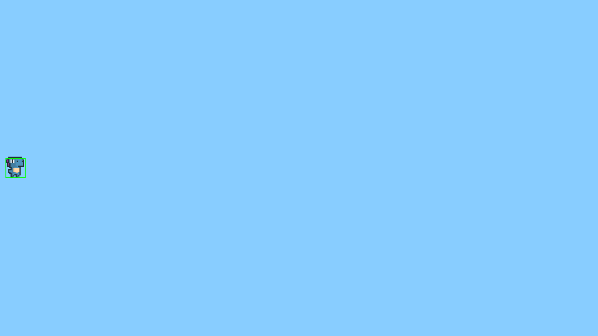 Running the script at this point should show a falling dinosaur, and let you jump twice and move a little left and right before falling to your doom. In the next step, we'll be building the level for the player to explore.